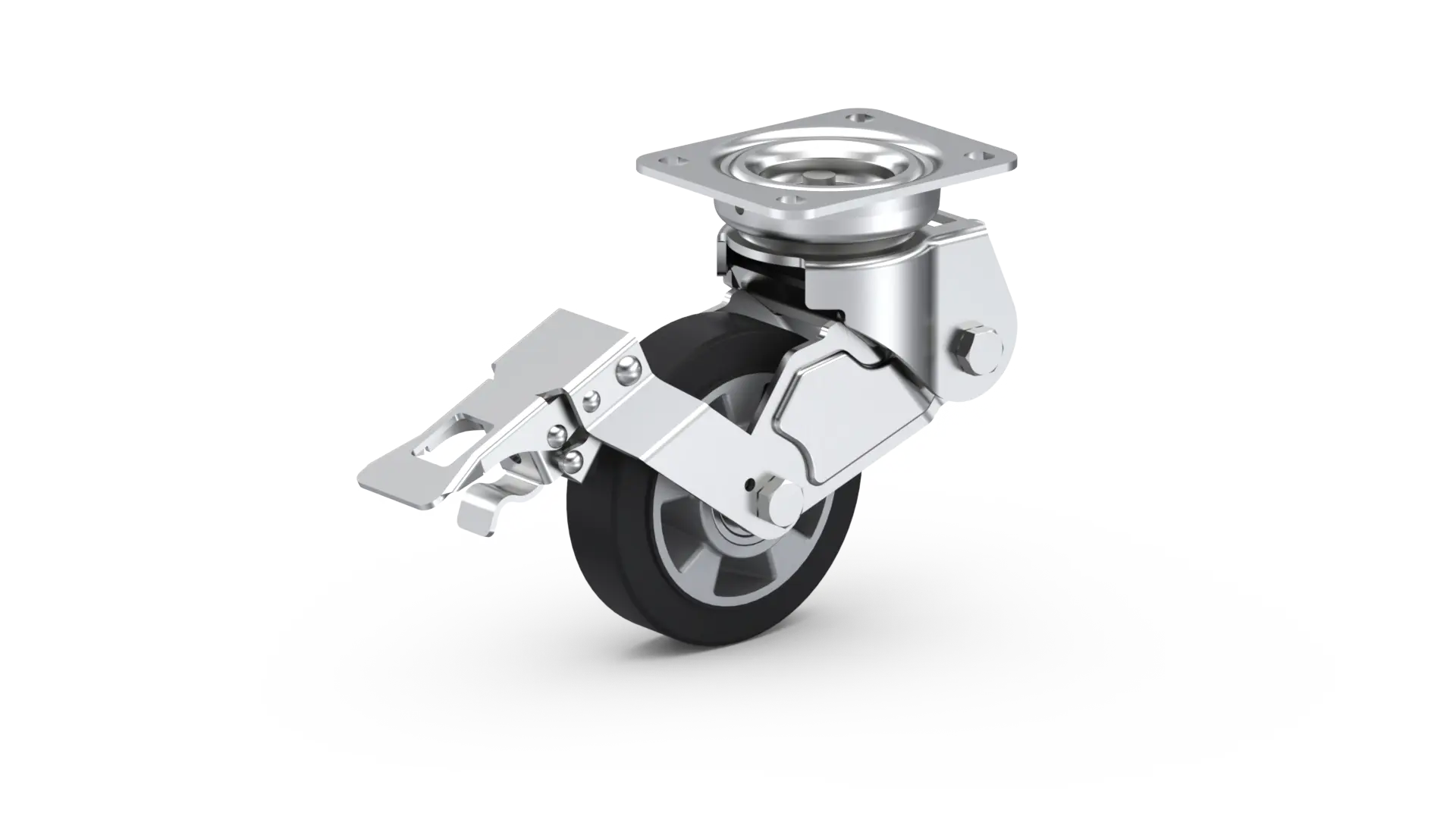 Odpružené otočné rolovacie koliesko s montážnou doskou na štyri otvory